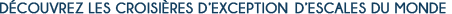 Spécialiste des croisières et des voyages « sur mesure », Escales du Monde vous invite à partir à la découverte d’horizons d’exception. Que vous soyez amateur de grands espaces et de nature, des passionnés de culture, ou bien friands d’activités ludiques, Escales du Monde vous proposera le voyage qui correspondra le mieux à votre personnalité et vos envies du moment.